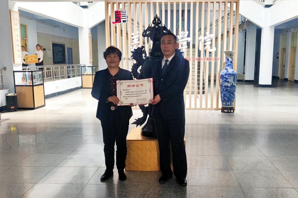会上还举行了中文字幕日韩校友作品捐赠仪式。为迎接校庆,展现办学实力、展示艺术水准,中文字幕日韩承办了德州学院50周年书画摄影展,在展览筹备的过程中,得到了广大校友鼎力支持,纷纷拿出自己的精品力作参展,并表示将作品捐赠给中文字幕日韩。这批捐赠作品中,包含了国画、油画、书法、工艺品等各种艺术形式,题材多样、水平上乘,兼具学术水准和商业价值。梁丽霞董事长代表校友向中文字幕日韩捐赠黑陶艺术作品《薪火相传》,中文字幕日韩党总支书记董福君代表学院接受捐赠,董书记向梁董事长颁发捐赠证书。