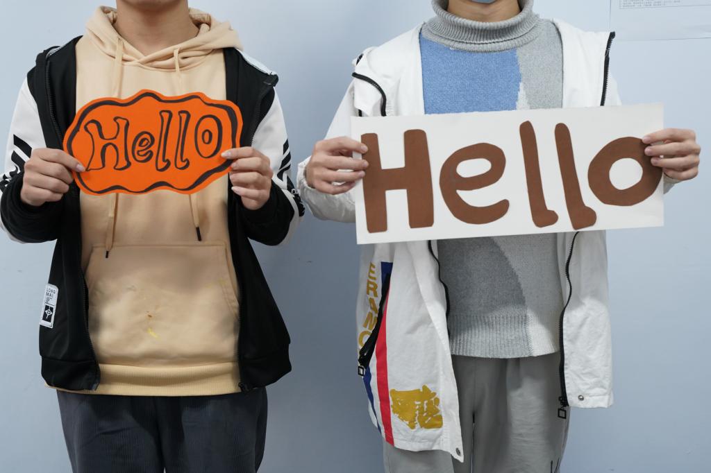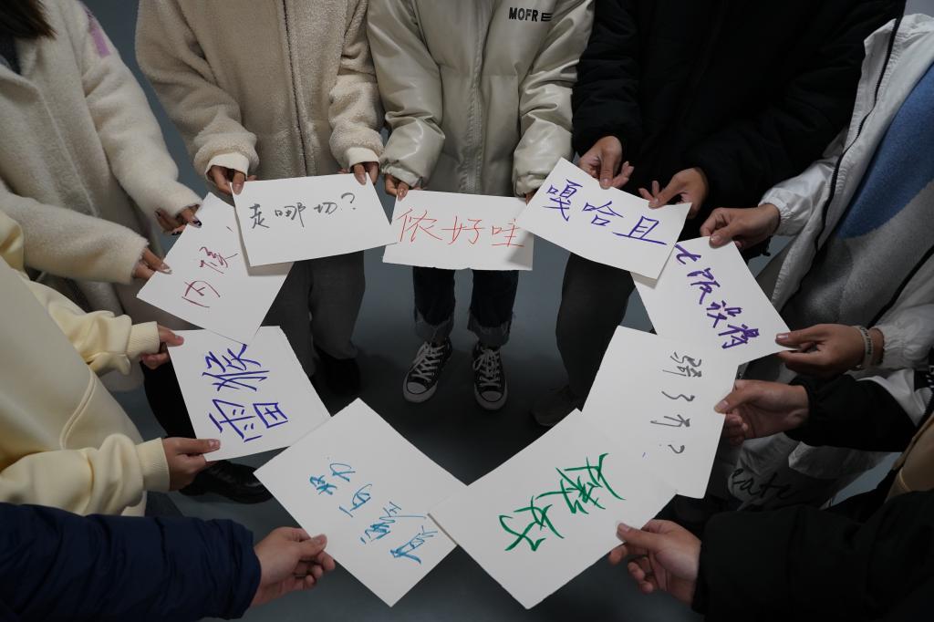 11月20日,中文字幕日韩师生制作“萌版笑脸墙”迎接“世界问候日”的到来。