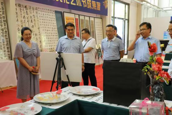 双方共同观看了德州市第三届大中专手工书画作品大赛展、山东华宇工学院设计与艺术学院2023届毕业生作品展。
