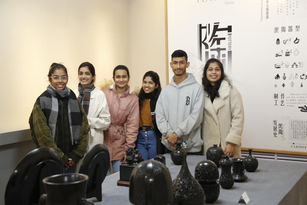 在参观过程中,留学生们还有机会与黑陶艺术家进行面对面交流。艺术家们向他们详细介绍了黑陶的制作工艺、历史渊源以及艺术价值,让留学生们对这门古老的艺术有了更加全面的认识。