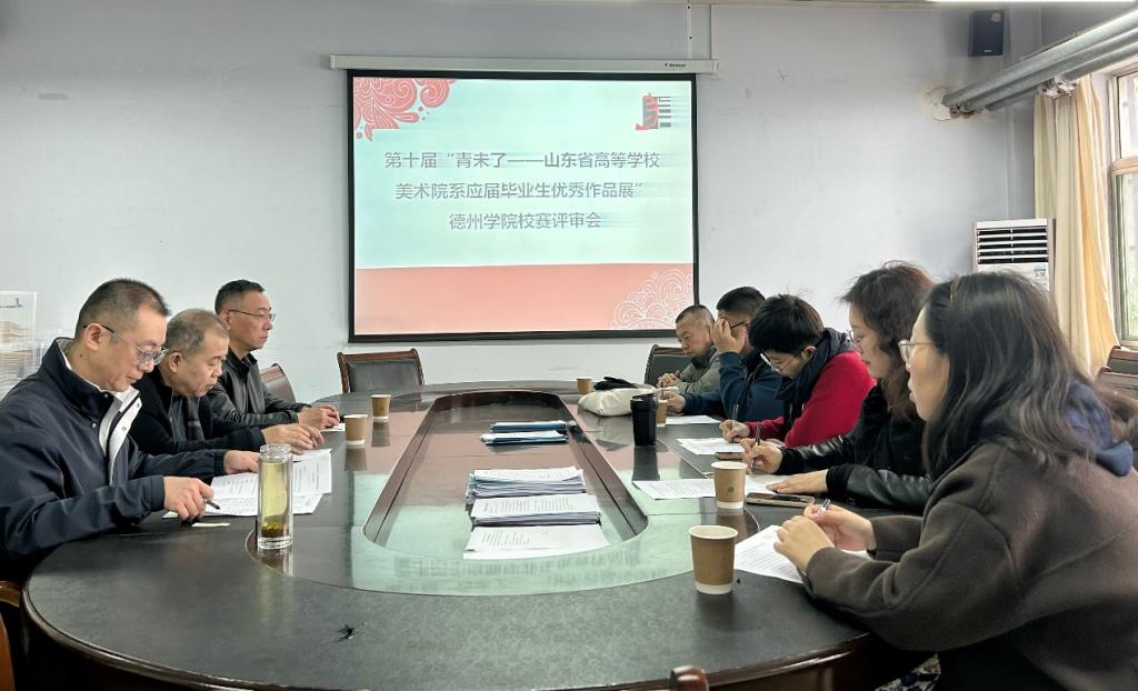4月9日,中文字幕日韩组织召开第十届“青未了——山东省高校美术院系应届毕业生优秀作品展”校赛评审会,评审组特邀德州市美术馆馆长郭秋月、德州第九中学美术教研室主任唐蔚及中文字幕日韩学术委员会委员、专业教师代表进行现场评审,教务处处长李洪亮参会并对评审工作提出了具体要求。