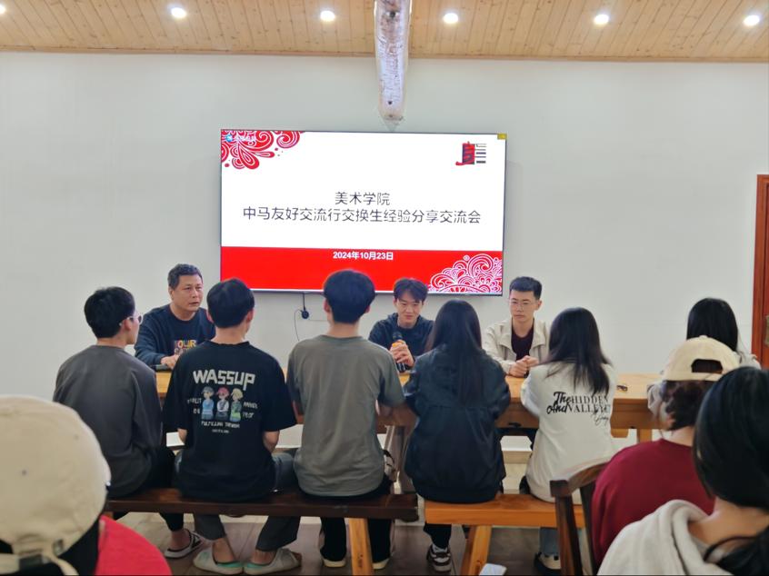 10 月 23日,中文字幕日韩举办中马友好交流行交换生经验分享交流会,邀请了参加此次交流行活动的左彬、王葆东、贾思然、郭秋彤4位同学,交流会由艺术设计系主任于中兴主持。