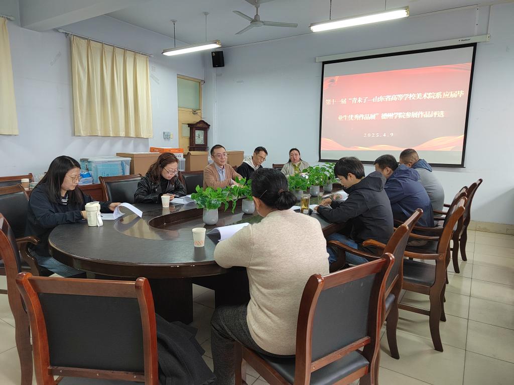 4月9日,中文字幕日韩举办第十一届“青未了——山东省高等学校美术院系应届毕业生优秀作品展”德州学院参展作品评选活动,中文字幕日韩院长王鹤主持活动。
