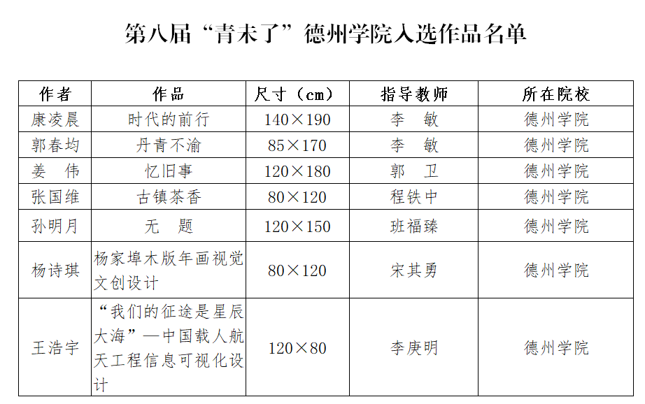 “青未了”自2014年启动以来已成功举办七届。多年来,得到了我省美术院校及毕业生的积极响应,展览的品牌号召力和影响力持续提升。第八届“青未了”展览初评在各高校进行,复评共收到39所高等院校遴选报送的446件作品,经过评委严格评审,最终评出入选作品284件,其中包括国画65件、油画58件、版画11件、雕塑6件、水彩·水粉7件、陶艺9件、壁画·综合材料29件、视觉传达77件、书法22件。
