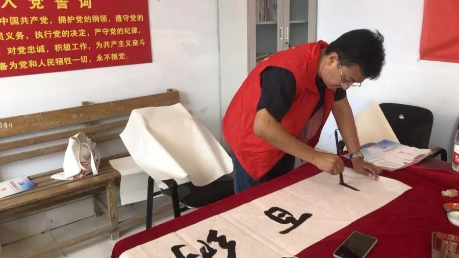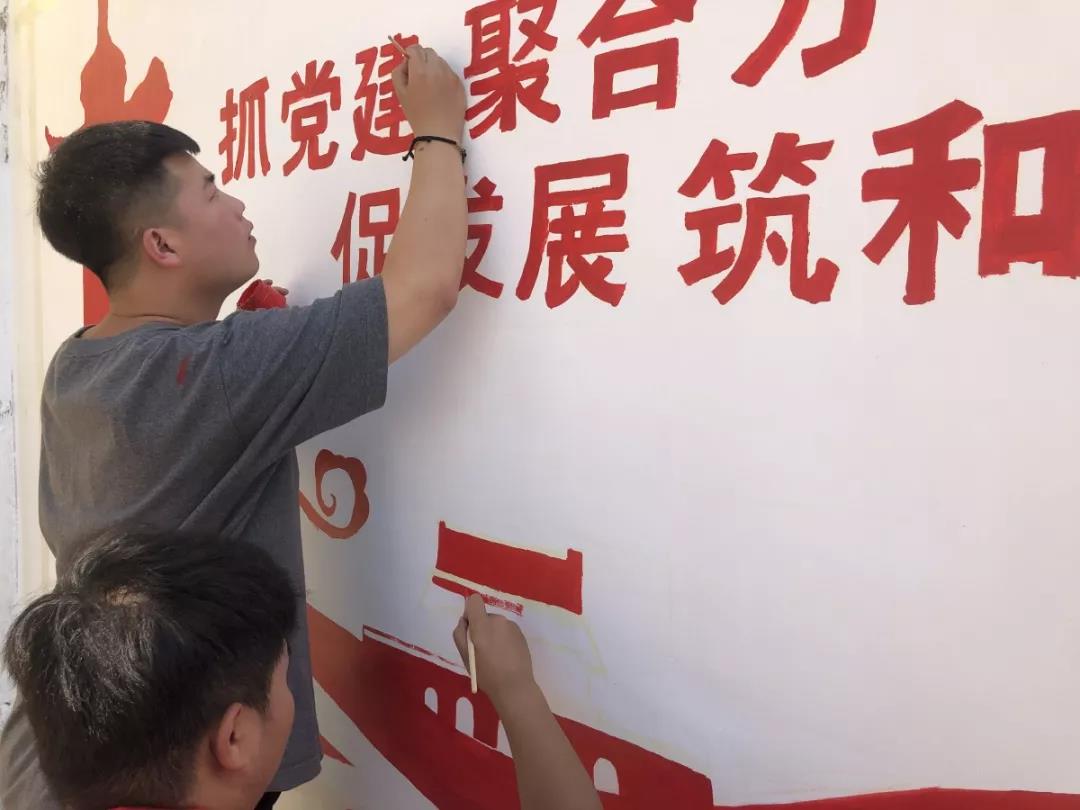 教师党员肖龙为村民们书写了《国泰民安》、《民康物阜》、《福寿康宁》等书法作品,并为村民简单讲解了每幅书法作品的运笔技法和寄托的美好寓意。此外,师生党员在深入调研当地人文风貌与生活方式基础上,以“礼赞新中国”为主题为董羊皮村党支部绘制近50㎡墙体,学院将社会调研与手稿设计、现场创作融合贯通起来,把支部院墙变为宣传习近平新时代中国特色社会主义思想的主阵地,是中文字幕日韩落实“不忘初心、牢记使命”主题教育的具体行动。