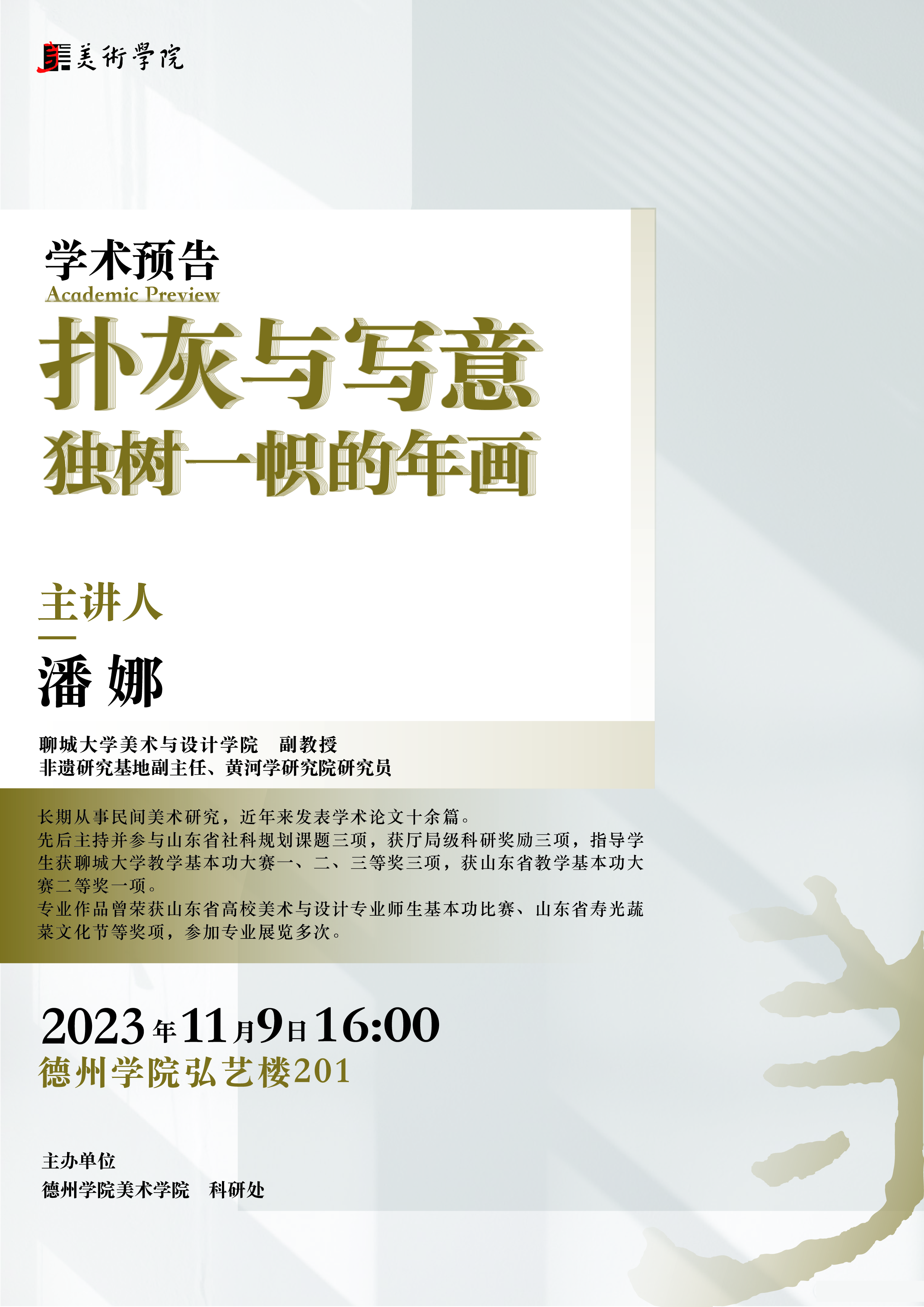 2023年11月9日,聊城大学美术与设计学院潘娜副教授来我院进行了“扑灰与写意:独树一帜的年画”为题的学术讲座,此次讲座以潍坊非物质文化遗产“扑灰年画”为主题,中文字幕日韩师生共同参与学习,受益匪浅。