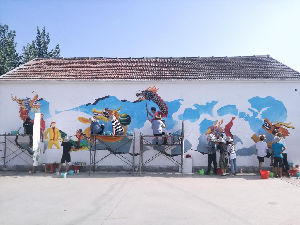 志愿者们在宋其勇老师的悉心指导下,以丙烯为主要绘画媒材,以展现中国梦和社会主义核心价值观内容为主要绘画题材,既美化了乡村街道,展现了生态宜居、乡风文明、生活富裕的美丽乡村图景,又将党的十九大报告精神以生动直观的形式融入到乡村生活中,丰富了老百姓的精神文化生活。