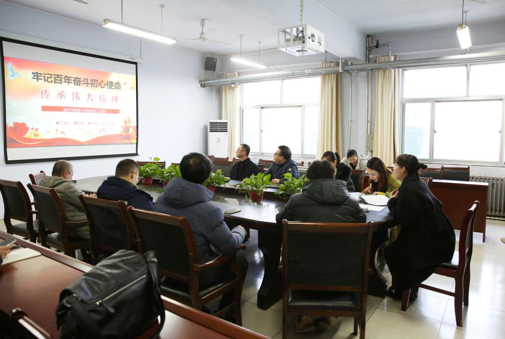 两位教师党支部书记分别以《牢记百年奋斗初心使命传承伟大精神》、《中国共产党章程制定修改的历史前沿》为题为本支部党员讲授了党课。党课均以中国共产党上重要的历史节点为例,重温建党百年的风雨之路,以史明志、坚守初心,教育引导支部党员秉承习近平总书记所强调的“始终保持革命者的大无畏奋斗精神,鼓起迈进新征程,奋进新时代的精气神”。各位党员纷纷表示此次学习使自己更加深刻地了解党的历史、更加坚信党的领导、更加坚定跟党走的信念。要进一步学习弘扬老一辈无产阶级革命家的拼搏奉献精神,切实增强工作的责任感、使命感、紧迫感,把党史学习教育成效转化为推动工作高质量发展的强大动力,为学院工作高质量发展贡献新的力量。